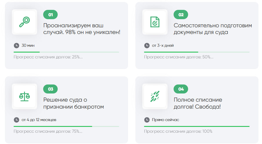 Отвечаем за результат списания всех долгов наших клиентов и создаем максимально выгодные условия сотрудничества